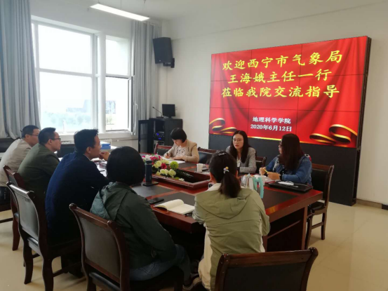 6月12日上午,西宁市气象局王海娥主任一行三人来beat365英国官网就科研项目合作事宜进行洽谈。学院党总支书记杨登兴、院长助理鄂崇毅教授、学院教师金鑫、金彦香、吴成永博士参加了洽谈会。