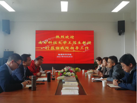 杨登兴向王苏生教授一行介绍了学院师资队伍、学科建设、科学研究、人才培养等方面的基本情况。毛旭锋、杨显明分别就学院研究生培养、人文地理学研究领域拓展等情况作了介绍。
