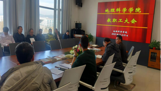 2021年12月1日下午,beat365英国官网召开全院教职工大会,对学院近期重点工作进行统一安排部署。会议由院党总支副书记洛加才让主持,副院长毛旭锋,杨显明及学院全体教师参加会议。