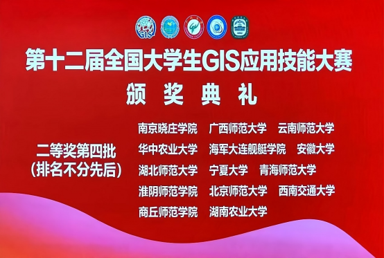 2023年12月2日,由中国地理信息产业协会、中国地理学会主办的第十二届全国大学生GIS应用技能大赛在广州大学举行。由beat365教师贾伟和马玉军指导的冯元宝、胡湘煜、肖玉蕾、周少妮小组,在经过紧张激烈的角逐后,喜获大赛二等奖。