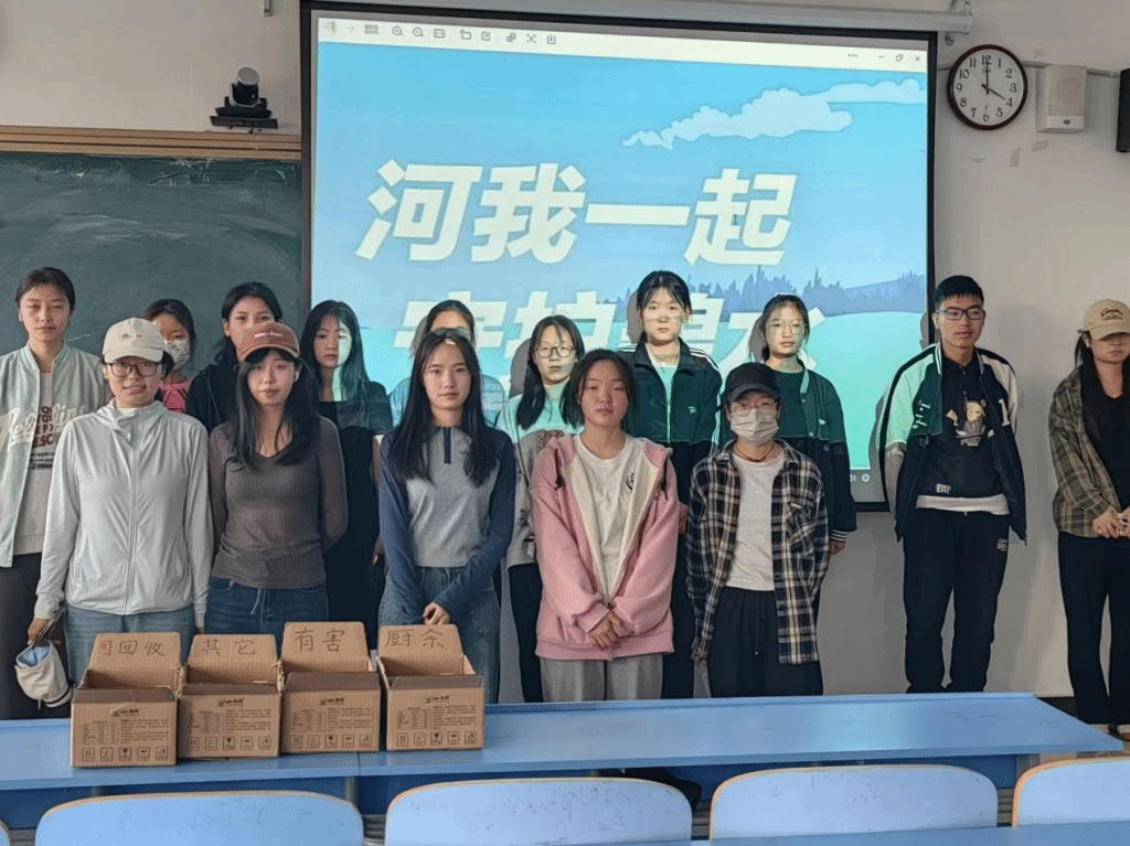 首先进行了校内活动,通过播放河流污染及其影响的视频,让同学们了解保护河流的重要性和紧迫性。然后现场组织了垃圾分类小游戏,让参与的同学分别往可回收垃圾、不可回收垃圾、厨余垃圾和其他垃圾等四个垃圾分类盒子中投入标注的垃圾,增强垃圾分类意识。