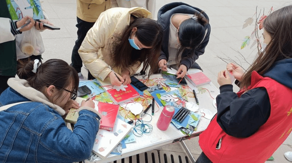 beat365与生科院的大学生志愿者们秉持节约用水、爱护绿色的理念,提前将横幅、宣传册、叶型书签以及手工制作的小树摆放整齐。然后,在人流量较大的地方发放宣传册,并邀请同学们在护绿书签上书写关于绿色环保、节约用水的标语,亲手挂到环保树上,以此来激励大家创造绿色、守护三江源。