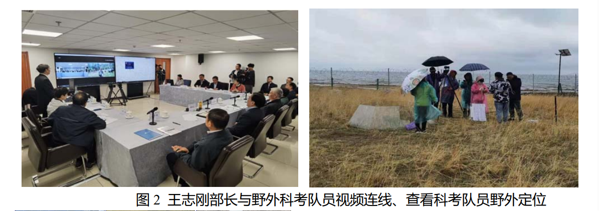 2021 年 5 月 10 日,科技部部长王志刚一行来beat365英国官网调研第二次青藏科考 工作,观看青海省开展第二次青藏科考工作汇报短片,听取史培军教授关于第二次青藏科 考(青海)服务保障系统建设与运行情况汇报。并通过科考信息服务保障系统与正在鸟岛 实验站进行野外科考的beat365英国官网科考队队员进行了视频连线。