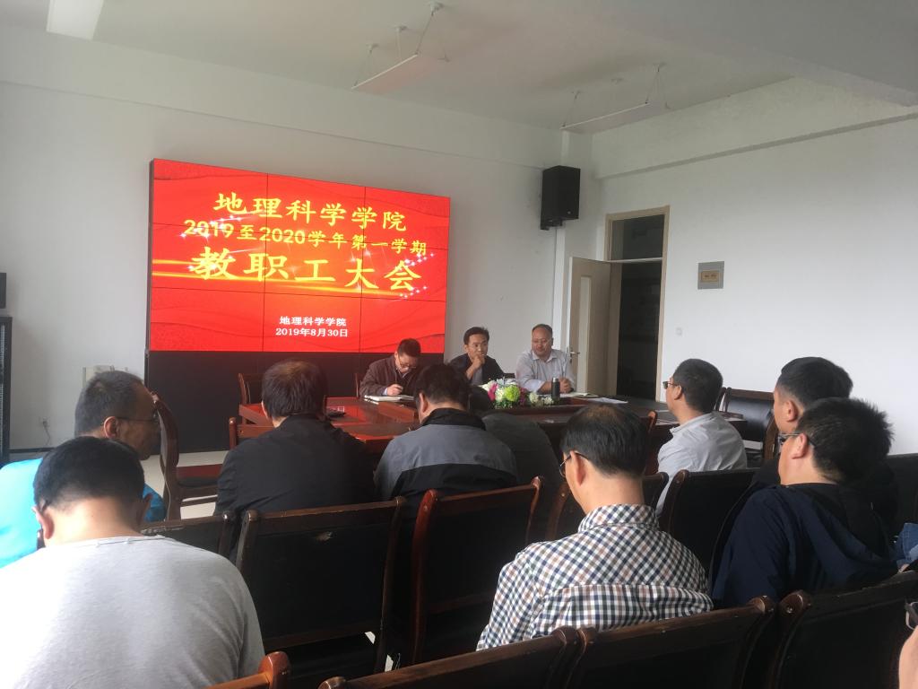 8月30日下午,学院召开了新学期工作部署会,学院全体教师参加了会议。学院各职能科室针对各自负责的工作,从教学事务管理、学生日常管理、相关文件的传达学习等方面向全院教职工进行了通报。